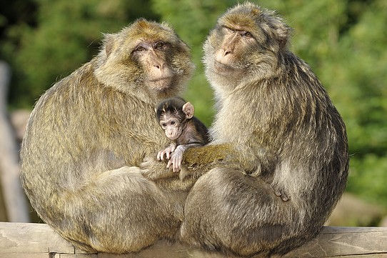 Chez les macaques de Barbarie, la paternité n’est pas connue. Et pourtant, les mâles s’impliquent activement dans les soins aux petits ! Ils portent les bébés, les cajolent, les protègent…